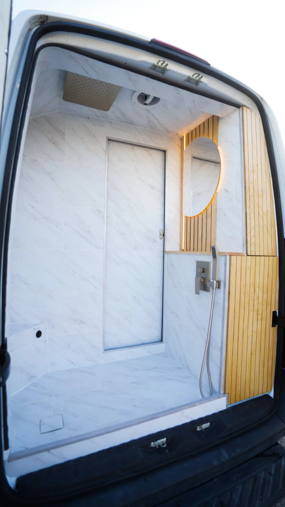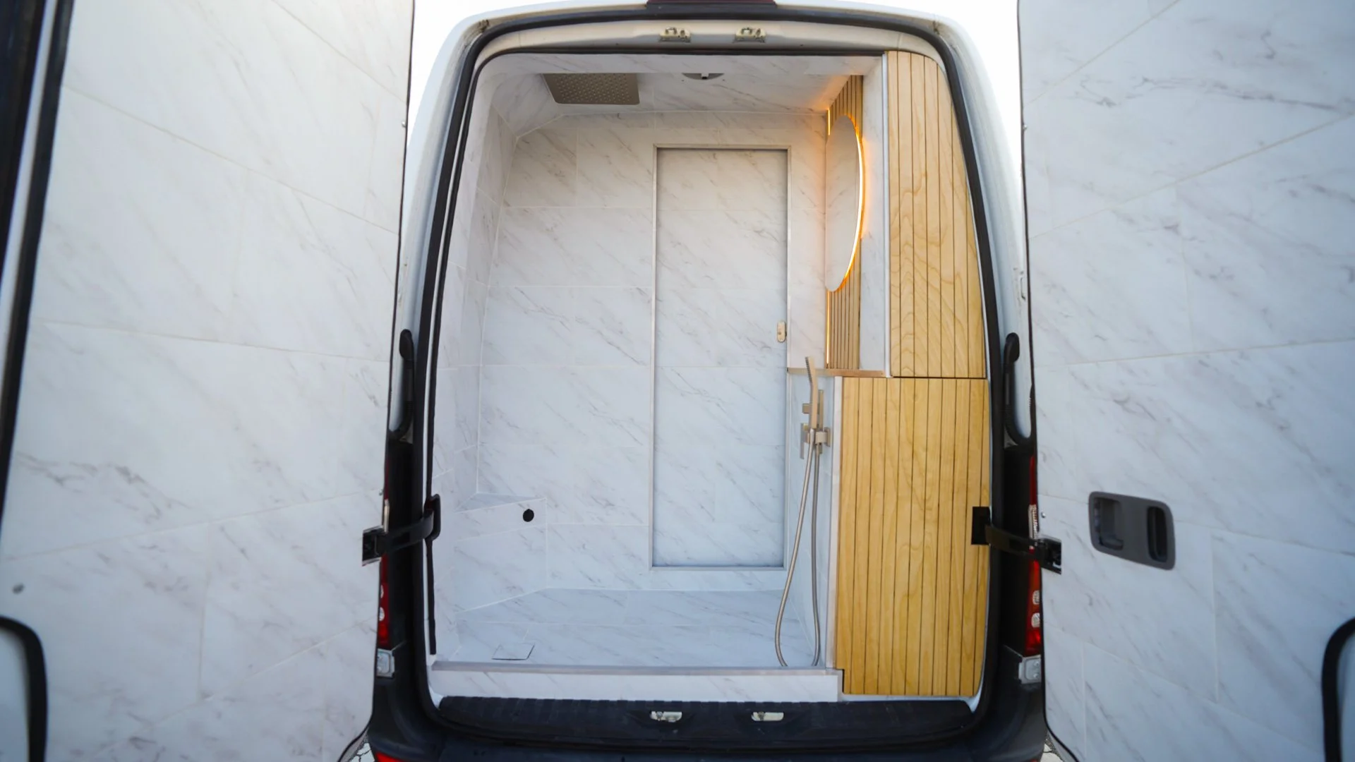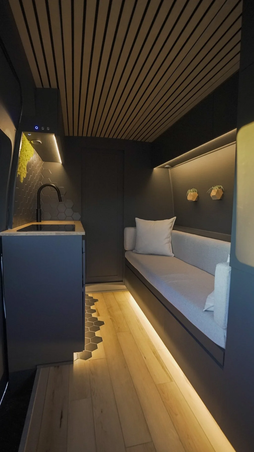 We brought the Dark Build back for a 3rd time with a new twist. We wanted to push the boundaries of what you can get inside of a medium wheelbase van and included a large back bathroom and some storage in the back of the van. This concept was intended to provide the luxuries of home such as a separate enclosed bathroom space while maintaining the modern apartment feel as well as the stealth and mobility of a smaller van.